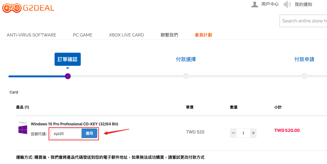 輸入促銷代碼「xyz20」