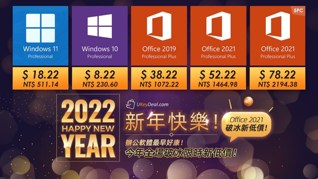 Ukeydeal 2022 新年大促!Office 2021!Windows11 NT$200起!限時瘋搶!!